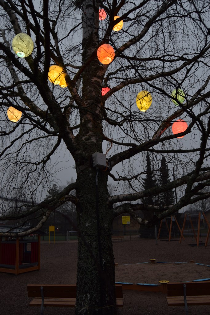 Sain apua paikallisilta yrityksiltä projektin toteuttamiseen. Artjärven sähkö oy suunnitteli valojen toteutuksen ja asensi maakaapelin leikkipuiston koivun luo. Meiserin konepaja oy valmisti tarvittavat metalliosat. Artjärven VPK kävi ripustamassa lyhdyt koivuun.