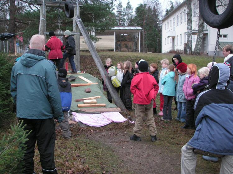 Artjärven ala-asteilla vetämäni kuvataidepäivät olivat osa lukuvuodelle (2005-2006) valittua teemaa tiede, taide ja turvallisuus. Halusin tutustuttaa oppilaat ympäristö- ja siihen sisältyvään tilataiteeseen, jotka koulun taidekasvatuksen puitteissa pääsevät vähemmän esille. Toisaalta myös koulun haltuunotto tilana ja koulualueen käyttäminen osana taideteosta kiehtoivat.