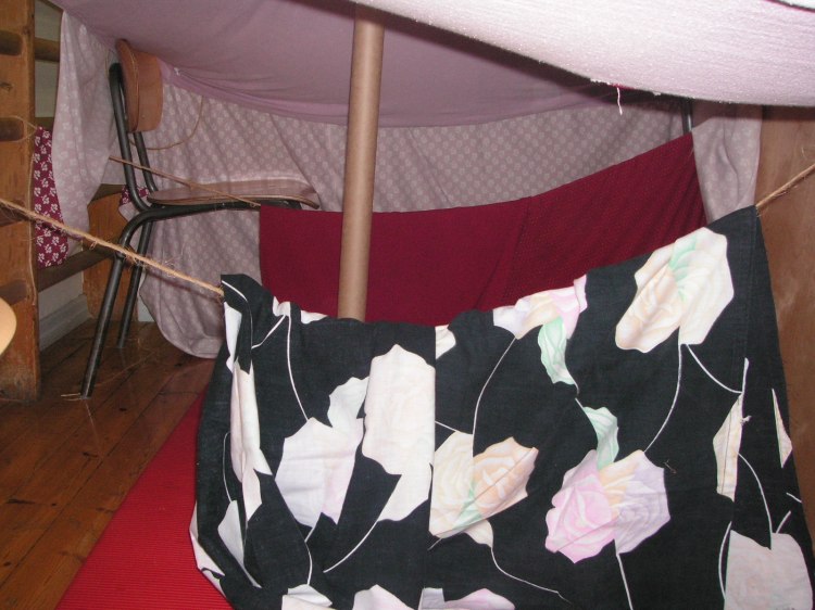 Majat toteutettiin ulko- ja sisätiloihin, oppilaiden itsensä valitsemissa ryhmissä. Materiaaleina käytettiin oppilaiden kotoaan tuomia vilttejä, lahjoituksena saatuja kankaita, huonekaluja, luonnonmateriaaleja, sekä oppilaiden (5.-6.-luokkalaisten) kanssa romulavalta haettuja kierrätysmateriaaleja. Majanrakennus sai innostuneen vastaanoton paitsi oppilaiden keskuudesta, myös heidän kodeissaan. Eräskin isä ajoi havukuormia ruokatunnillaan rakennuskäyttöön. Maja-projektista tehtiin myös juttu paikalliseen sanomalehteen. Kuvataide päivän päätteeksi tutustuttiin yhdessä rakennettuihin majoihin, tekijät kertoivat paikan ja materiaalien valinnastaan, sekä vastailivat muiden esittämiin kysymyksiin. Esittelykierroksen jälkeen skoolattiin mehuboolia maja-näyttelyn avajaisten kunniaksi.