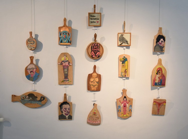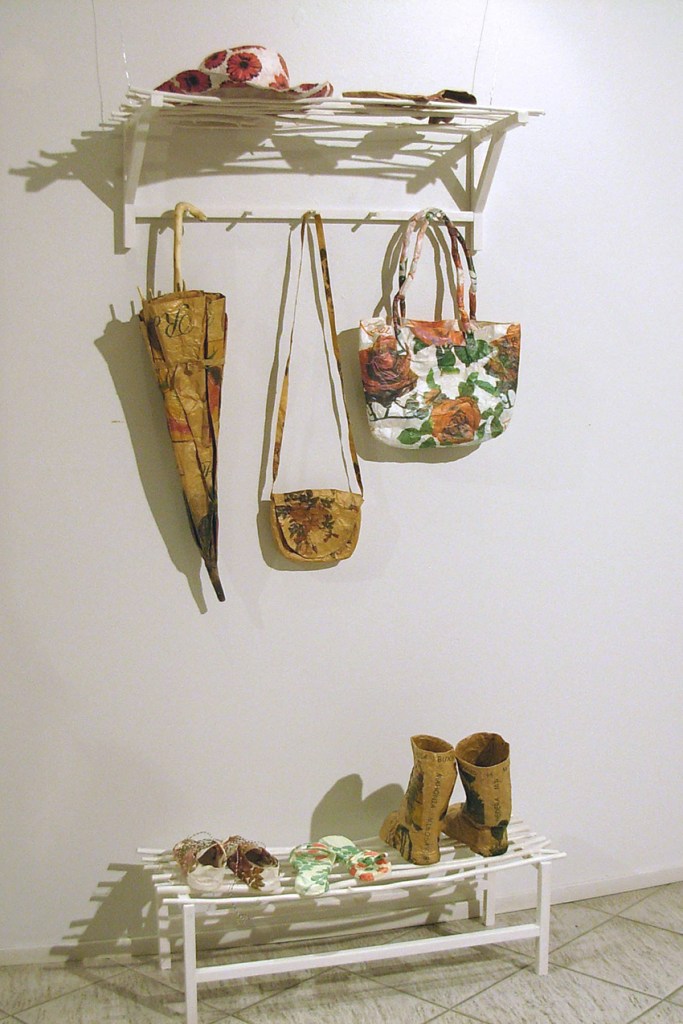 Liikaa Kaikkea, 2014-2020, onnittelukortit, lahjanaru, puuLiikaa kaikkea, 2014-2020, onnittelukortit, lahjanaru ja puuLiikaa kaikkea, 2021, hatut, muovihelmet, muovikoussikat, savi, siivilät ja siemenetMyytti ja Ikoni, 2021 tiskirätit, leikkuulaudat, pannunaluset ja perunajauhokiisseliMyytti ja ikoni, Lavinia Fontana, 2021Myytti ja ikoni, Lavinia Fontana, yksityiskohta, 2021Myytti ja Ikoni, Sigmund, 2021Myyti ja ikoni: Oviraptor, 2021Myytti ja ikoni, 2020, tiskirätit, leikkuulaudat, pannunaluset ja perunajauhokiisseliMaria, sarjasta Myytti ja ikoni, 2020Äidin keittiö, sarjasta Myytti ja ikoni, 2020Sateinen kesä, 2010, sateenvarjo ja pyörimisratasTahdotko mut tosiaan, 2012, puu ja naulatTahdotko mut tosiaan, 2012, puu ja naulatStill-Life, 2011, puu, metalli ja valoStill-Life, 2012, yksityiskohta, puu, metalli ja valoKauniita kuppeja, 2010, metalli ja kahviservetitNeiti Kevät, 2008, puu ja kukkapaperiFutu-Rex, Future-X, 2006, muovituolit, puutarhakeinu ja vaneriFutu-Rex, Future-X, 2006, yksityiskohta, muovituolit, puutarhakeinu ja vaneriKuivuminen ja kastuminen, 2005, pellavapaperi, pyykkipojat ja naruKuivuminen ja kastuminen, 2005, pellavapaperi, pyykkipojat ja naru